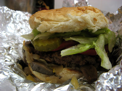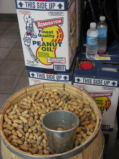 J had visited the Queens location before — they have a MySpace page! — but this was my first time sampling the famous burgers. Each one is made to order, and Five Guys provides all the shelled peanuts you can eat to tide you over while you’re waiting for your order number to be called.