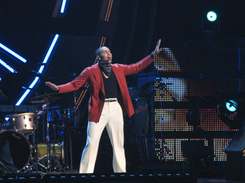 R&B heartthrob (and boyfriend of Rihanna) Chris Brown sported a retro-looking red blazer for his Sam Cooke tribute on “Cupid“. Minutes later, he picked up a black fedora and doffed the jacket — the better for showing off some of those famous acrobatic dance movies — for a performance of his hit “Forever.”