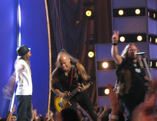 Kid Rock closed out the show with his summer hit “All Summer Long“. Special guest Lynyrd Skynyrd took the stage to segue off the classic riff and add a chorus of “Sweet Home Alabama,” which brought the star-studded crowd to its feet.