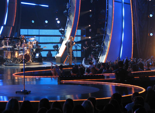 A Timbaland-produced medley (introduced by a heavily made up Tyra Banks) with One Republic, Chris Cornell and the Pussycat Dolls, who performed “When I Grow Up“. The acts all took the stage for their final bow, joined by Timbaland, who strolled out like a triumphant fashion designer at the end of a successful runway show.