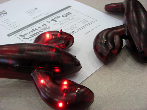 Another advantage of visiting off-peak: no lines, no waiting. Well, no waiting to place your order, anyway; the seafood is still fried fresh — sure they have broiled items on the menu, but why? — but now instead of hovering by the formica-topped counter as you wait for your food, the cashier hands you a red plastic lobster that flashes when the order is ready for pick-up. Like this: