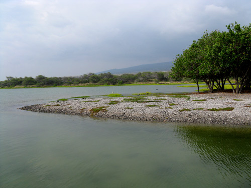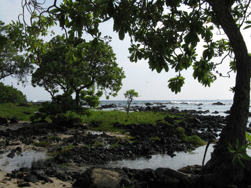 A clearing among the black, jagged lavafields of the Kaloko-Honokohau National Historical Park: