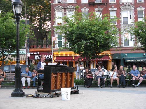 We followed up instead with a stop at the Grom on Bleecker, carrying our scoops of creamy Stracciatella gelato to a bench across the street in Father Demo Square where some industrious performer was banging out tunes on an upright piano he had rolled into the park. Crazy piano guy indeed! (His name is Colin Huggins and he also happens to be the Joffrey Ballet School‘s music director and the pianist for the American Ballet Theatre.)
