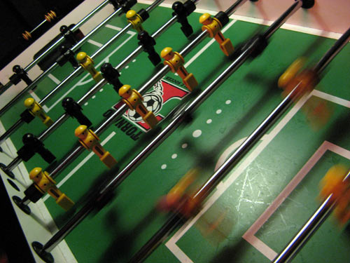 The real festivities, of course, began later that evening, and did not involve manual labor. We paid the $3 cover for access to the subterranean pool hall/game room, with its décor reminiscent of a Disco-era suburban basement rec room… but in a good way. This isn’t one of those sceney pool lounge spots — just a low-key place to down cheap beer and shoot stick with friends. Dim lighting, live jam sessions, worn couches, mismatched tables, and strewn throughout: billiards and ping pong tables, shuffleboard, foosball, and board games galore. New York magazine named Fat Cat Billiards the city’s “Best Pool Hall” in 2001.