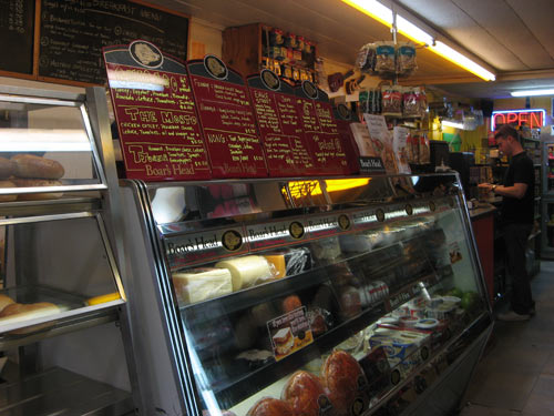 And although it seemed ridiculous to stop for more food after such a brunch, we were determined to scratch off another item from our Greenpoint [To] Hit List: the Franklin Corner Store, an unassuming corner deli which was highlighted by Robert Sietsema for serving his favorite Cuban sandwich in the city. I’d always been partial to the cubanos at Sucelt in the West Village, but since it closed last Christmas Eve after 31 years in business, I had yet to find a suitable replacement. This may be it. Be warned, though: the men here approach their sandwich-making like an art. There’s just no rushing the meticulous stacking of ham, pork roast, pickles and white cheeses. Even without pressing – we were saving our sandwiches for dinner later and thought it best to do the final toasting on our own – it was a twenty minute affair. But worth every minute.