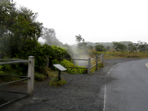 Steam forced to the surface when rainwater seeps into the ground, meeting with hot rock below: