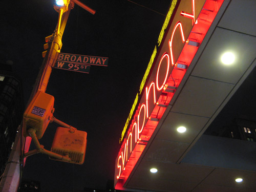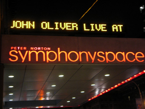 After a light dinner at the not-so-divey Dive Bar on W. 96th Street — hey, I wasn’t about to cross the picket lines at Saigon Grill — we headed over to Peter Norton Symphony Space for the taping of John Oliver‘s upcoming Comedy Central special (scheduled to air on April 20).
