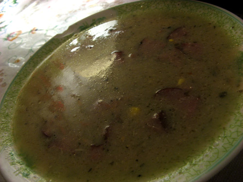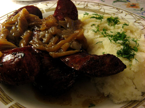 The $4.50 polish kielbasa platter, which included vegetable (stewed cabbage) and mashed potatoes, topped with chopped dill: