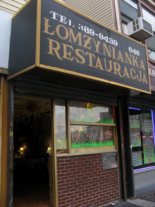 Lomzynianka (lahm-zhin-YAHN-eh-ka) on Manhattan Avenue is considered one of the better options for tasty and authentic Polish food at wallet-friendly prices, in an area where bargains can still be found. The restaurant’s name translates to “Girl from Łomża,” which refers to the restaurant’s chef-owner Janina Grzelczak who hails from that town in Poland, 80 miles northeast of Warsaw. This small, unassuming neighborhood joint is widely-praised for its hefty portions of meat and potatoes — a favorite with locals and food critics alike. Eric Asimov gave Lomzynianka the “$25 and Under” treatment in 2002. With a little planning, that princely sum probably could have fed four. With leftovers. Food blogger NYCnosh managed to satisfy three here with a budget of $20, including wine, tax and tip.