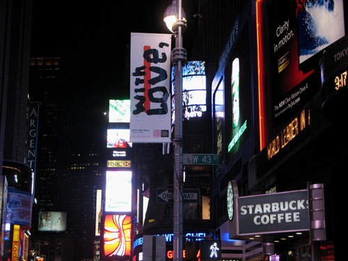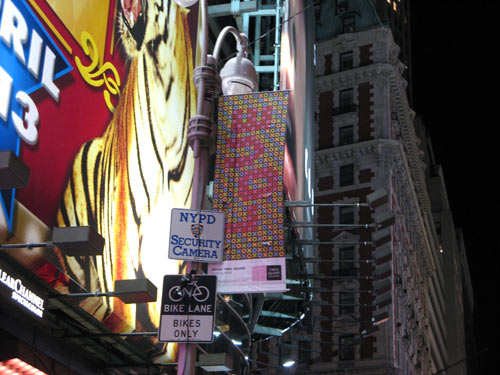 Just in time for Valentines Day, the Times Square Alliance unveiled “LOVE in Times Square” — a public art project featuring 15 banner designs by 12 top graphic artists, each inspired by the word “LOVE.” The colorful flags have been mounted on lampposts all around Times Square.