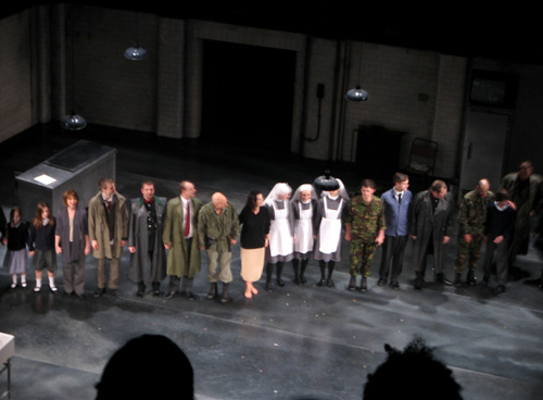 What could I possibly add to all the rave reviews? Anthony Ward’s stark, grey-washed set generates a fitting level of eerie foreboding throughout as it multi-purposes as war hospital, a kitchen and a morgue. The visual projections on the back walls ranged from documentary footage of Stalin’s marching armies to dark, dripping blood, adding to the unsettling atmosphere. There were so many moments and performances to admire: Kate Fleetwood’s fiercely sexy take on Lady Macbeth… the innovative staging of Act III’s banquet scene: first as viewed through the guilt-crazed eyes of Macbeth, and then replayed after intermission from the perspective of his guests… the “weyard sisters” making their first appearance as preternatural field nurses, rap-chanting their “Double, double toil and trouble” spell amid zapping lights and booms of thunder (well, that may have been a little gimmicky)… the unbearably drawn-out, horror-stricken silence that follows when exiled future king Macduff (Michael Feast) is told the news of his butchered wife and children…