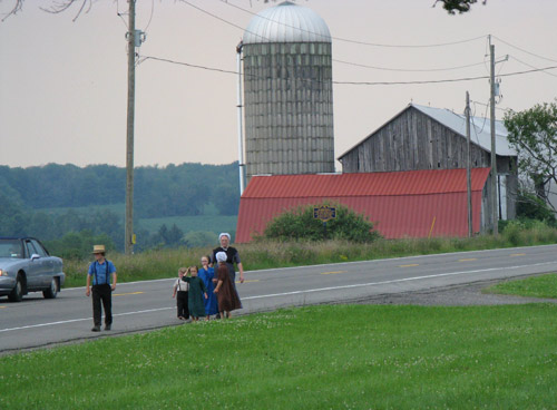 Amish family, walking the route. I snapped this from quite a distance away, with my 6X optical zoom — is that bad?