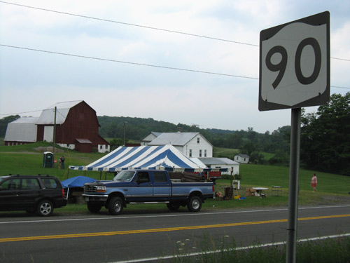 The Route 90 sale wends through the historic farmland of Cortland and Cayuga counties, from Montezuma in the north to Homer in the south. Along the way, there are bucolic fields of corn and what we later determined to be soy, a few picturesque small towns, and several less-picturesque trailer parks scattered along the shores of Cayuga Lake.