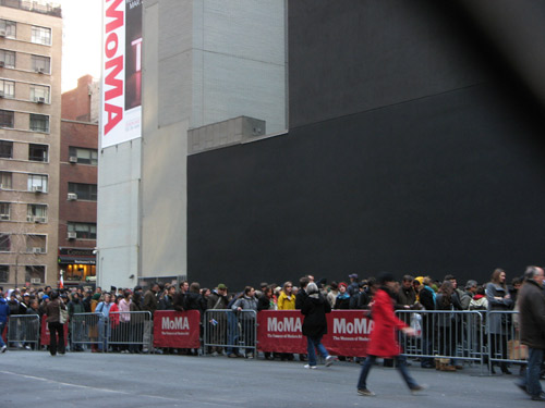 I crossed paths with the touring trio on Sixth Avenue, as they were heading into the MoMA to take advantage of Target Free Friday Nights when museum admission is complimentary from 4–8PM. All other times, it’s a rather steep $20, which explains this insane queue for entry.
