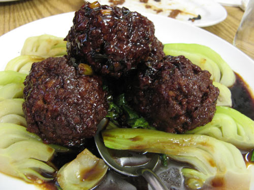 … a Lion’s Head — so named for the plated appearance of these oversized pork meatballs ringed with a “mane” of braised bok choy: