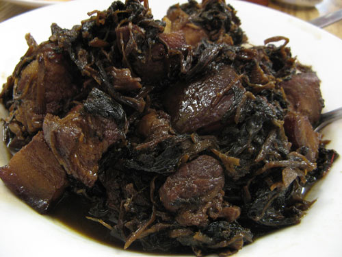 … a wonderfully flavorful Salty Pork with Bamboo Shoot soup, somewhat misleadingly listed on the menu as a “casserole.” (Those are tofu skin knots breaking the surface.):
