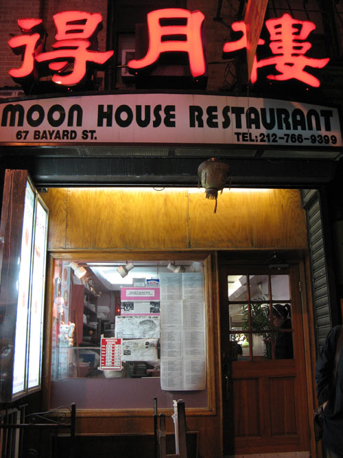 After such a build-up, where else would we go but Chinatown? JL had suggested dinner at Moon House on Bayard, a restaurant I’d yet to hit despite near weekly visits to the neighborhood. Once again, we were happy to hand over the ordering reins to his capable hands. Despite the notable lack of green on the table — prompting an amused comment from our waitress — JL did a stellar job hooking us up with a rich representation of Shanghai specialties.