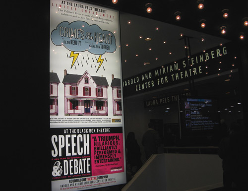 Actress Kathleen Turner has been generating a lot of buzz recently for her upcoming autobiography Send Yourself Roses (currently excerpted in the UK’s Daily Mail), in which she dishes on former co-stars including William Hurt, Michael Dougles, Nicolas Cage and Burt Reynolds. J and I saw Turner — a whole lot of her — when she performed “Mrs. Robinson” in the 2002 Broadway staging of The Graduate. Meh. This time, though, Turner is behind the scenes in her New York directorial debut: an Off-Broadway revival of Crimes of the Heart at the Laura Pels Theatre. (It was her commanding, husky voice that warned everyone to turn off their cell phones before the curtain rose. Her mildly threatening tone incited some nervous laughter, but not one ringer went off during the performance.)