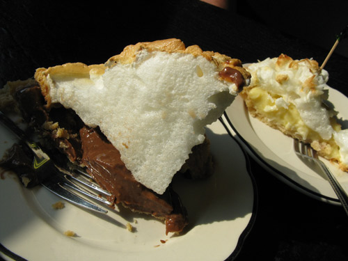 And of course, our visit would not be complete without sampling those pies: chocolate meringue (very first slice) and coconut cream (very last slice):