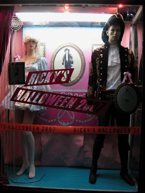 Ricky’s NYC beauty shop–36 locations and growing!–carries an impressive line of cosmetics and hair care products, but they are perhaps best known as one of the city’s prime sources for body glitter, temporary tattoos, wigs, and uh… let’s just say “novelties.” The days leading up to Halloween are the chain’s busiest, and tonight on the way home from my weekly CSA pick-up, I passed the Upper West Side store to find it packed with last minute costume shoppers scouring the aisles to a pounding dance music soundtrack.