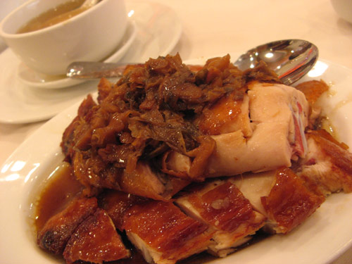 Deciding from among the extensive list was not easy. Something about the chill of winter puts me in mind of my ongoing quest for the perfect roast chicken. Amazing 66 offers a Chinese version with preserved vegetable. Simple and comforting, I thought. What was placed before me minutes later far exceeded my expectations.
