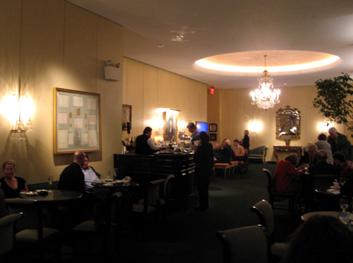 Intermission in the Eleanor Belmont Room, a club used by members of the Metropolitan Opera Guild. We were there courtesy of SYB’s guest passes; the private lounge is otherwise only made available for pre-performance dining and intermission coffee and cocktail service for Contributing Level (or higher) Met Guild donors.