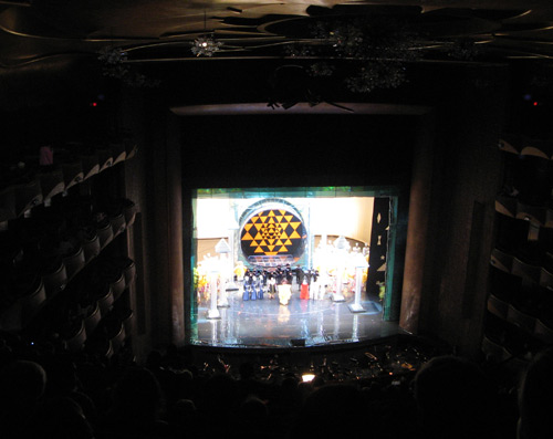 At the Metropolitan Opera House tonight with HYB for Die Zauberflöte (The Magic Flute). Mozart’s final opera is the tenth most frequently performed opera in North America. I’d seen a fairy-tale-like production (with Andrew Porter’s English translation) at the New York City Opera across the plaza a few years ago; this season, the Met brought back Broadway and film director Julie Taymor’s 2004 production.
