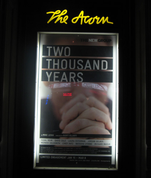 Instead, I was at The Acorn in Theatre Row for The New Group’s American premiere of Mike Leigh’s Two Thousand Years, featuring onetime troubled actress Natasha Lyonne, which began previews on January 15.